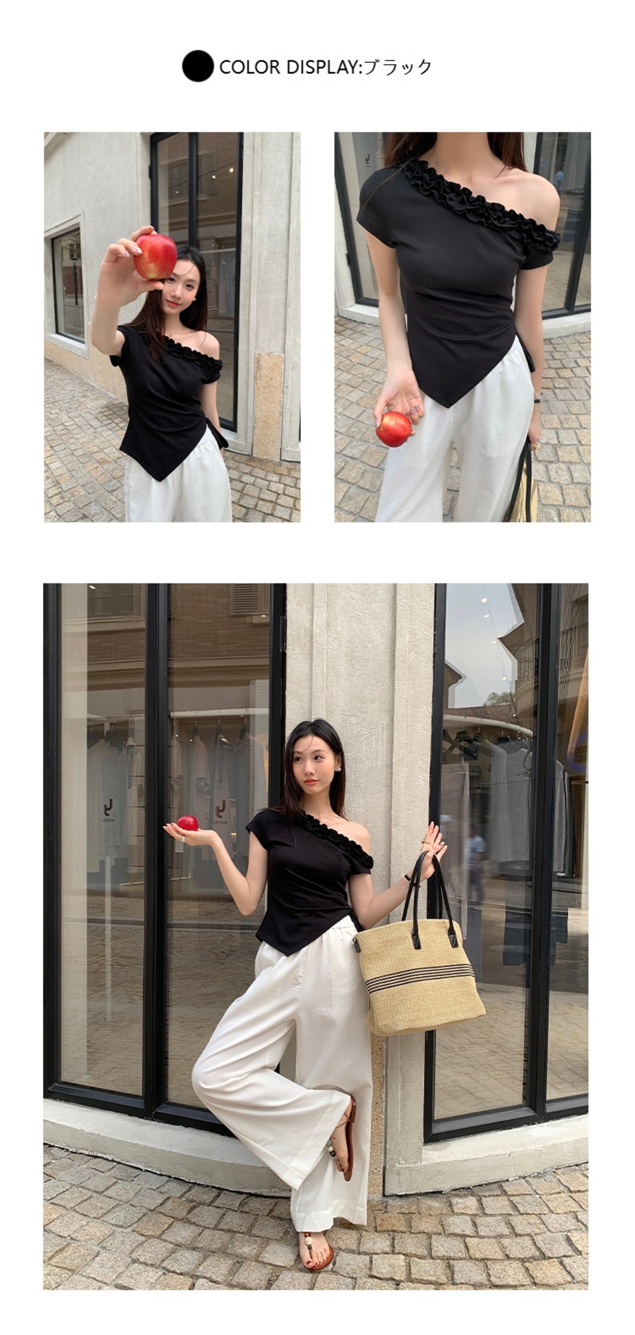 新たな個性を楽しむ、レディース フリル オフショルダー Tシャツ|個性的 アシンメトリーカット ギャルスタイルが登場しました!このTシャツは、流れるようなフリルデザインと独特なアシンメトリーカットが魅力で、カジュアルな中にも華やかさをプラスします。さらっとした肌触りの素材が使用されており、デイリーユースでもストレスフリーな着心地を実現しています。