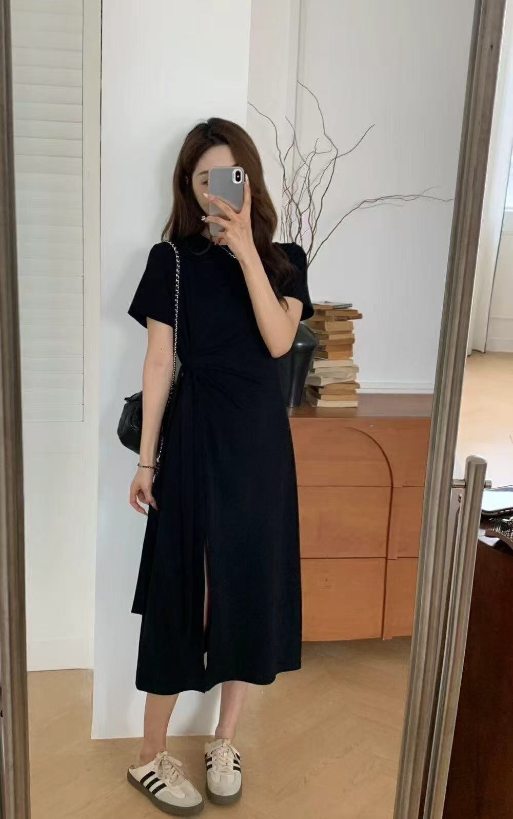 新たなトレンドを感じる、シックなスリット入りブラックワンピースが登場しました!この魅力的なデザインは、カジュアルな日常から特別なシーンまで幅広く活躍するアイテムです。滑らかな素材が心地よく、シーズンを問わずご利用いただける一着です。スリットのデザインが女性らしさを引き立て、抜け感ある洗練された印象を与えてくれます!